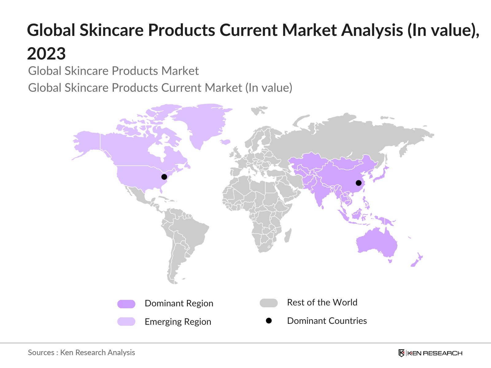 The Global skincare products Market, valued at USD 120 Bn in 2023, is driven by the increasing demand for organic products, rising consumer awareness about skincare routines, and advancements in skincare technology.