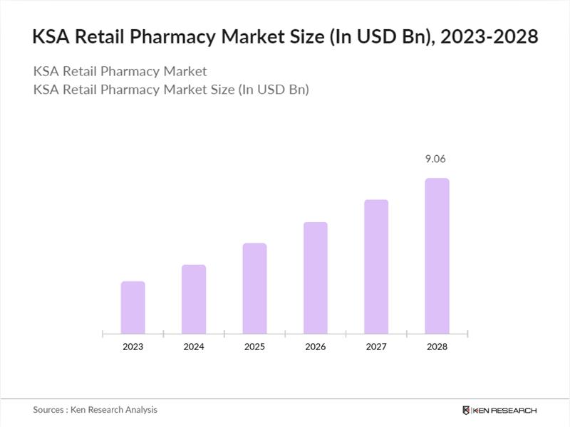 The KSA retail pharmacy market was valued at USD 7.19 billion in 2023, driven by a growing population, rising chronic diseases, and increasing consumer expenditure on healthcare.